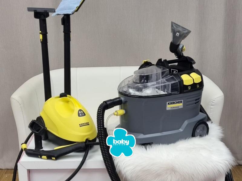 - Моющий пылесос-экстрактор Kärcher Puzzy 10 или Puzzy 8, специально разработанные для химчистки диванов, ковров, матрасов и прочей мягкой мебели. В комплекте идет экологически безопасное чистящее средство Karcher CarpetPro RM 760 OA, не требующее дополнительной промывки или нейтрализации после чистки.